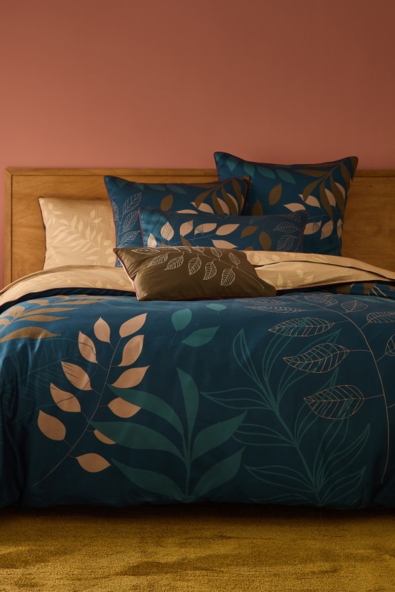 Parure copripiumino in cotone Dina - Verde scuro e marrone