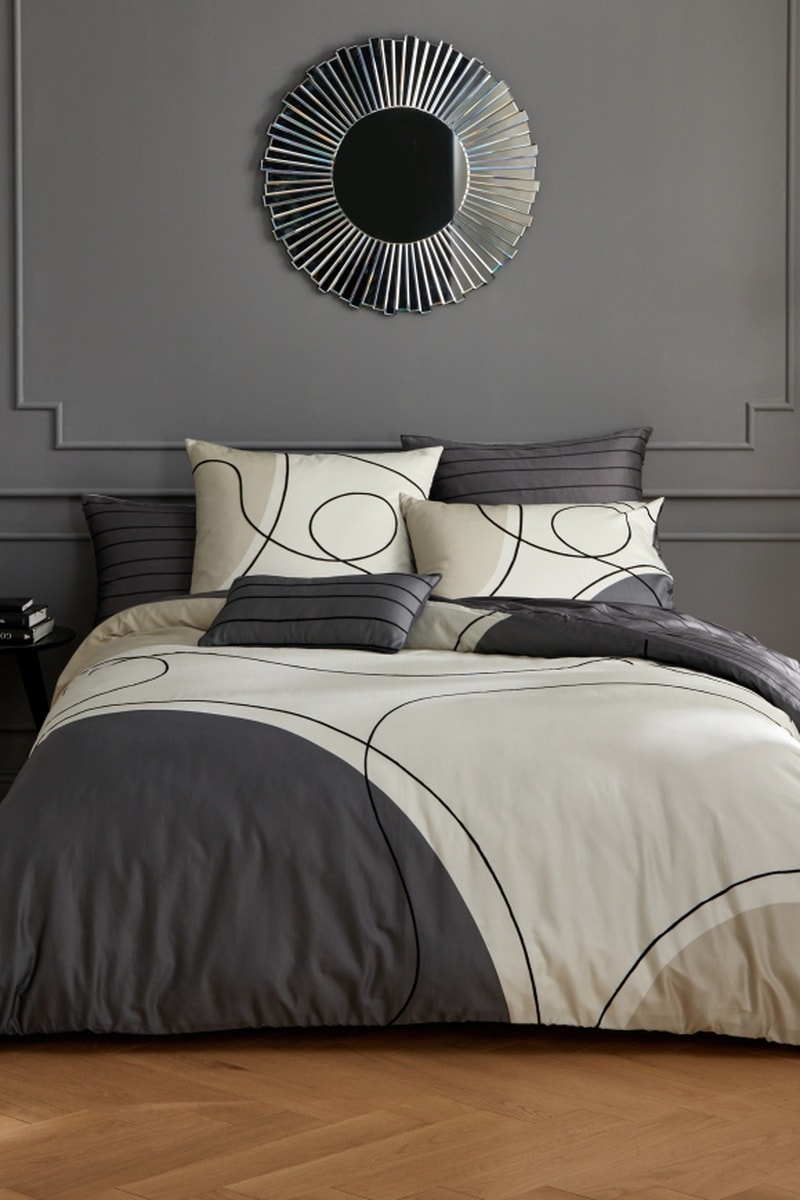 Parure copripiumino in cotone Solene - Grigio scuro e bianco