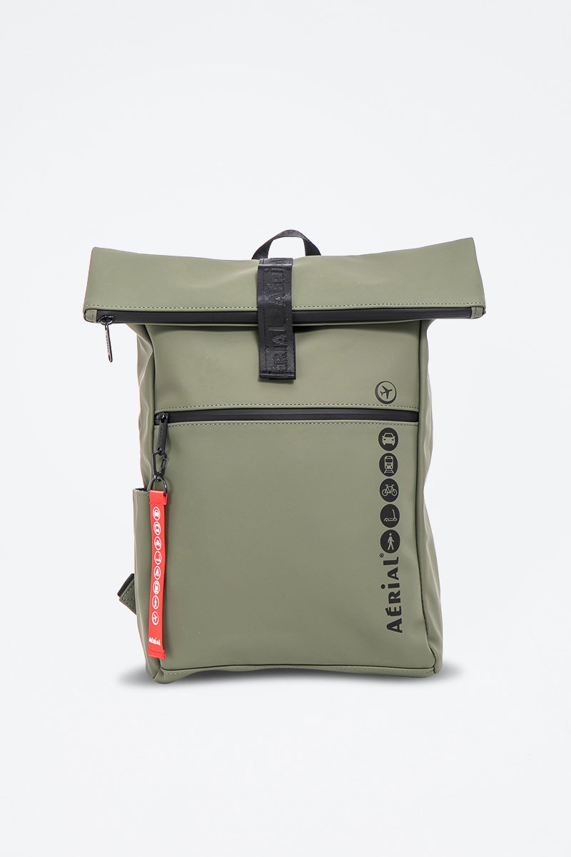 Tasca con cerniera, motivi fantasia e logo sul davanti.