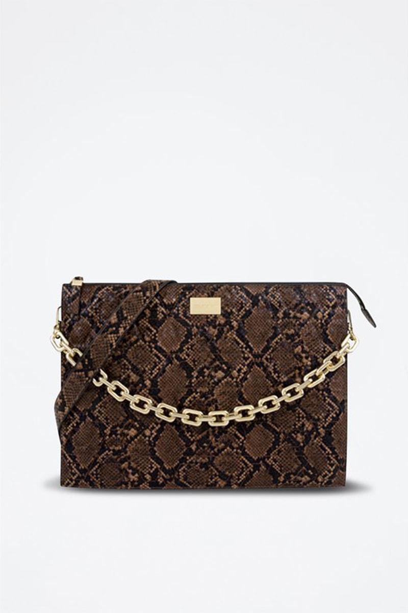 Classica e senza tempo, è arricchita da una grossa catena decorativa a maglie che le permette di essere trasportata a tracolla e a mano.