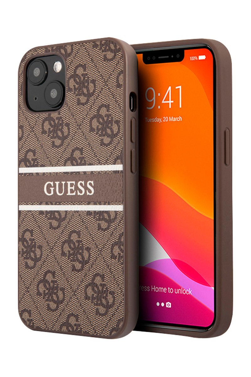 Cover PU 4G Stripe per iPhone 13 Mini - Marrone - Guess