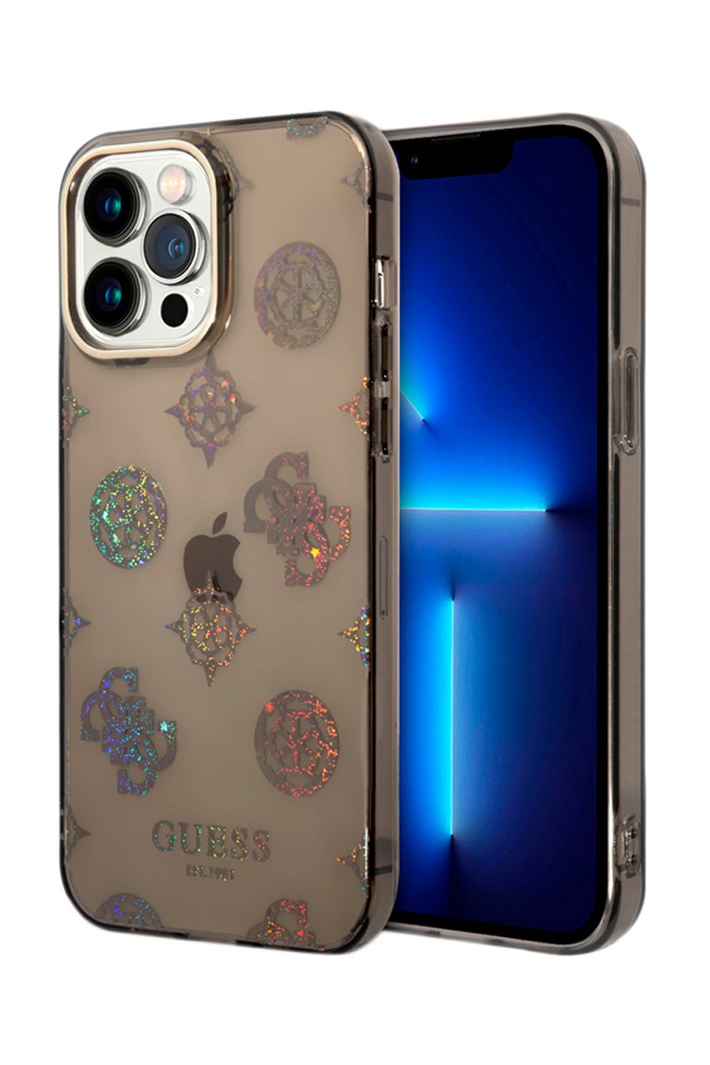 Cover TPU Peony per iPhone 14 Pro Max - Nero translucido - Guess