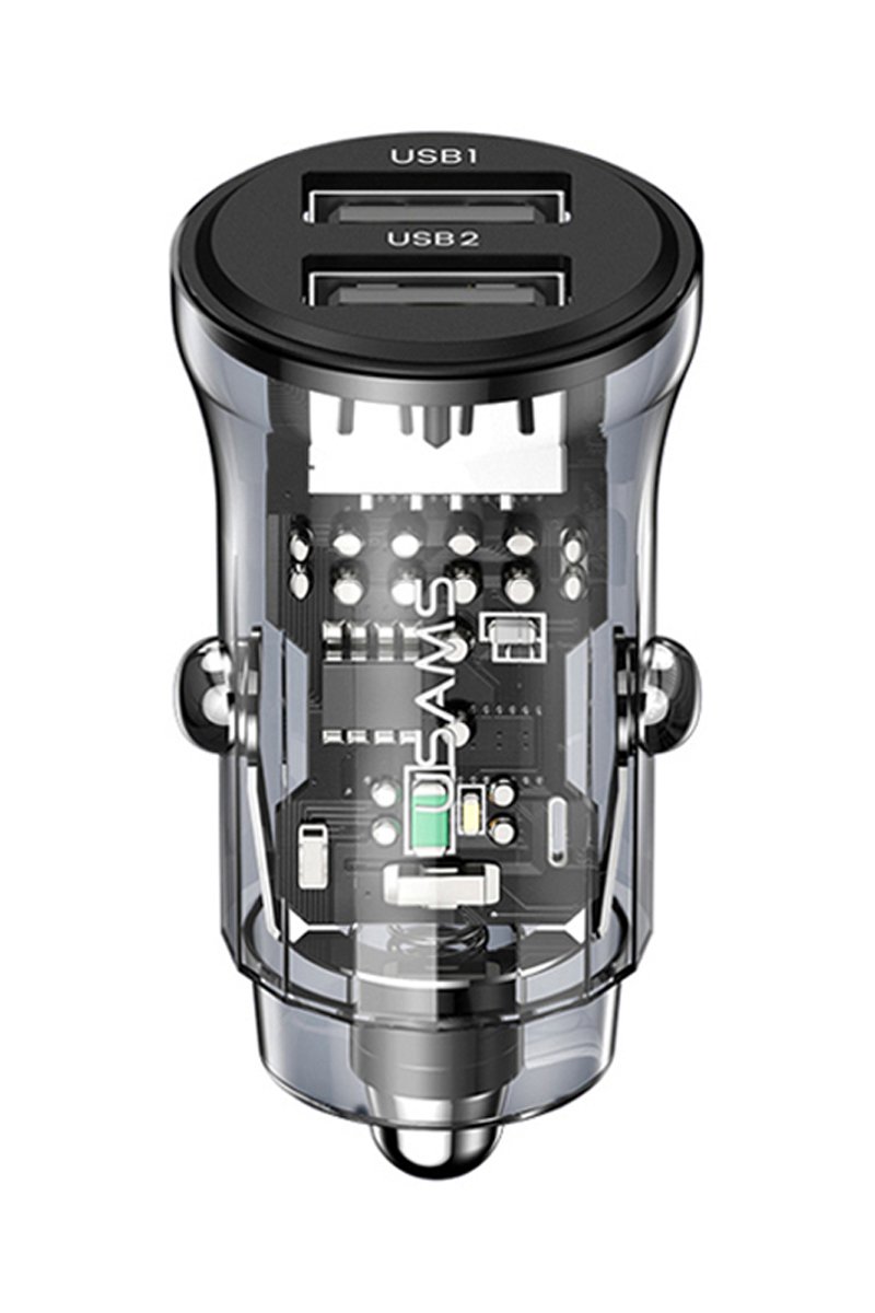 Caricabatteria auto 15W doppia porta USB-A - Nero Trasparente