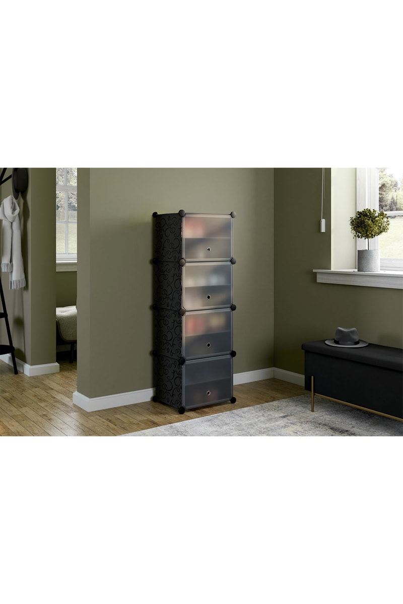 Scarpiera cubo - 24 paia - Nero e trasparente