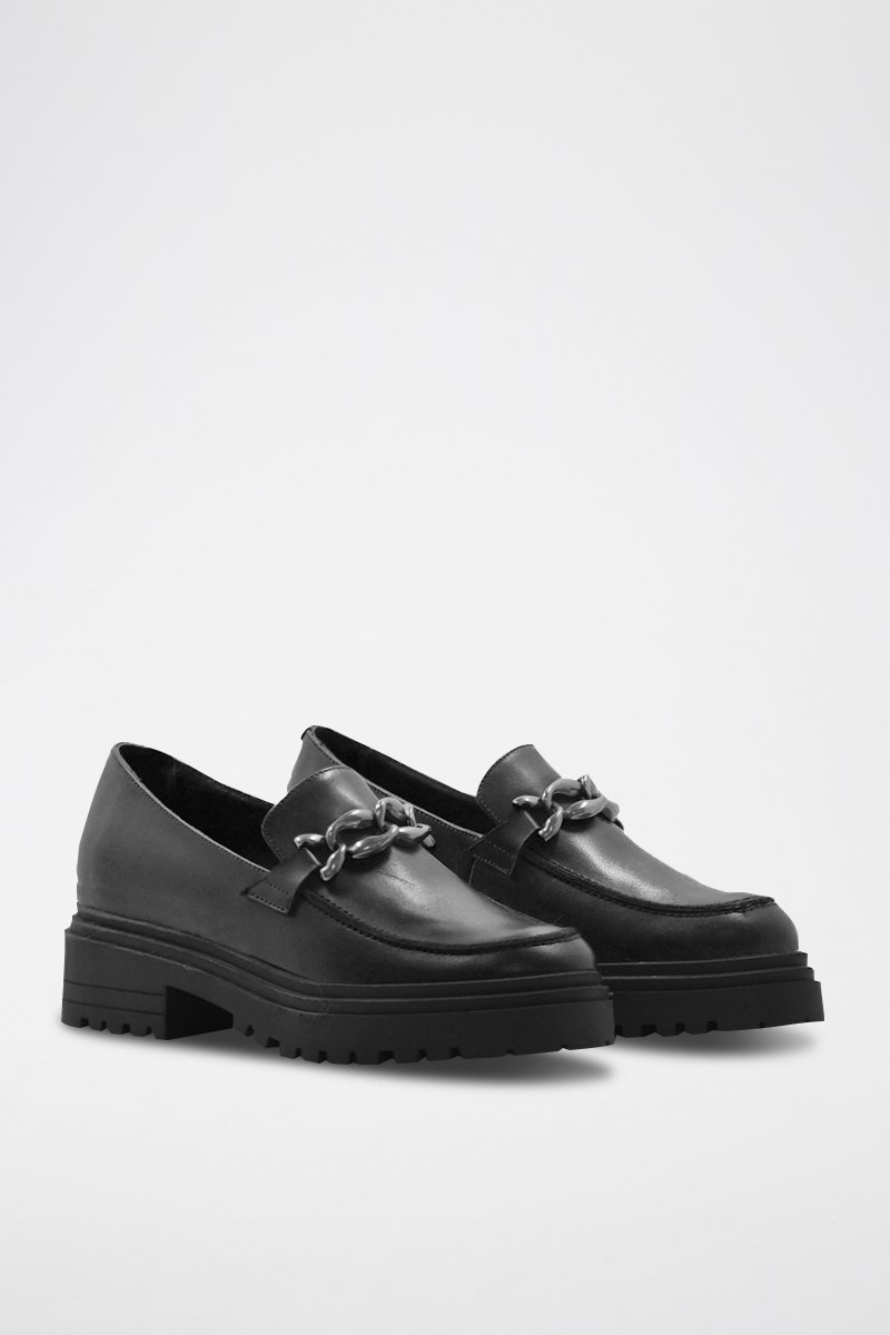 Mocassini con tacco in pelle nappa - Nero