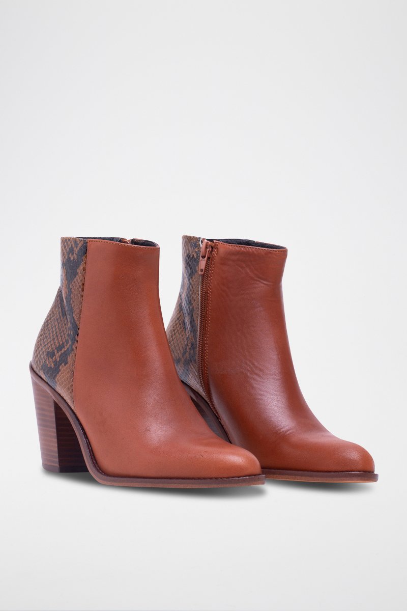 Stivaletti in crosta di pelle - Marrone e rosso mattone