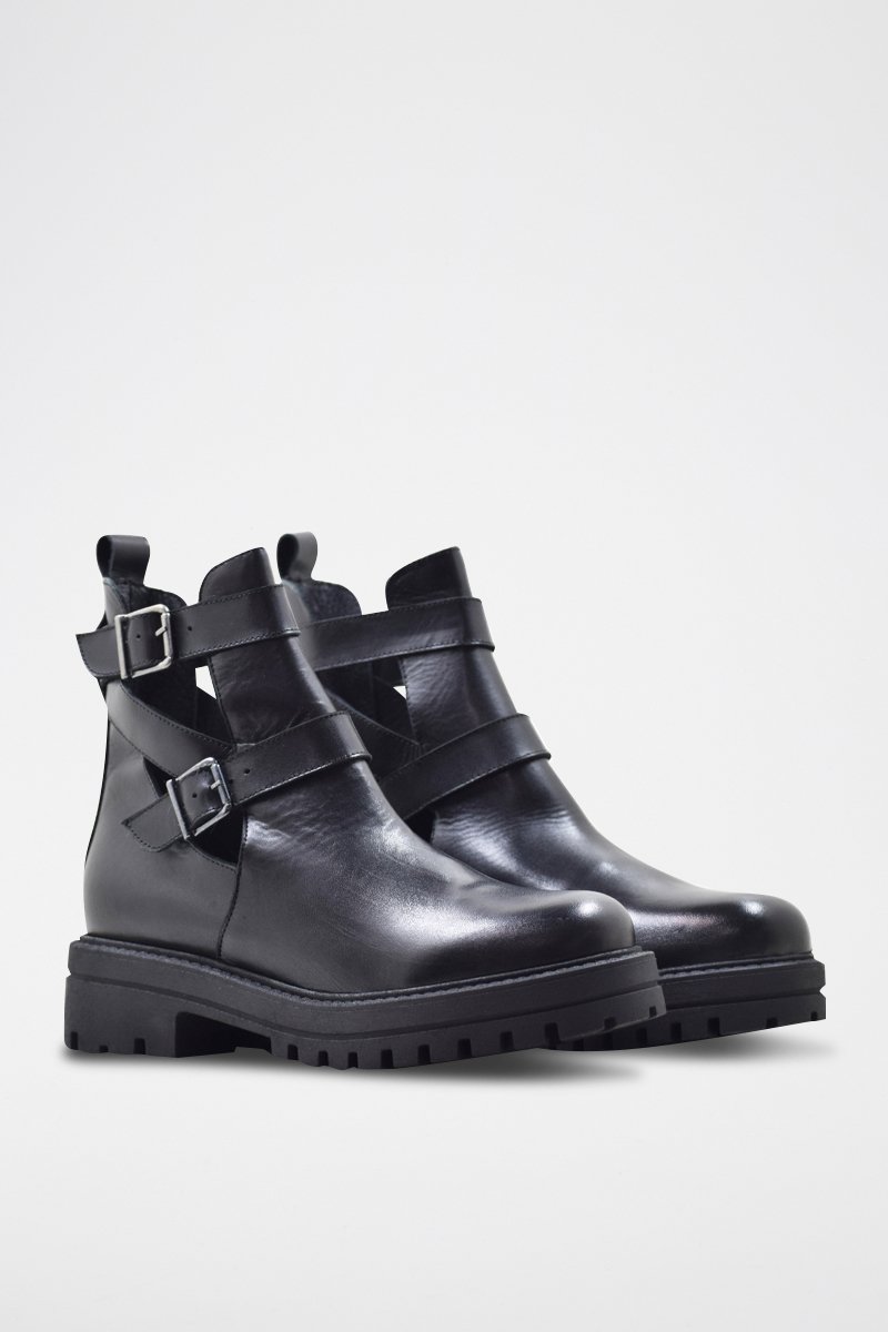 Stivaletti in crosta di pelle - Nero
