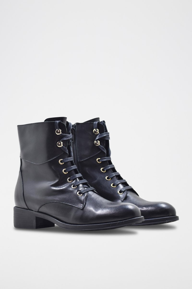 Chiusura con lacci sul davanti e con cerniera sul lato.