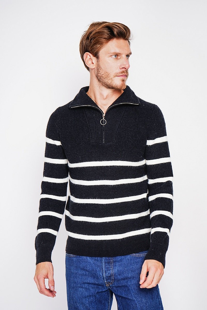 Motivi a righe sulle maniche, sul davanti e sul retro.