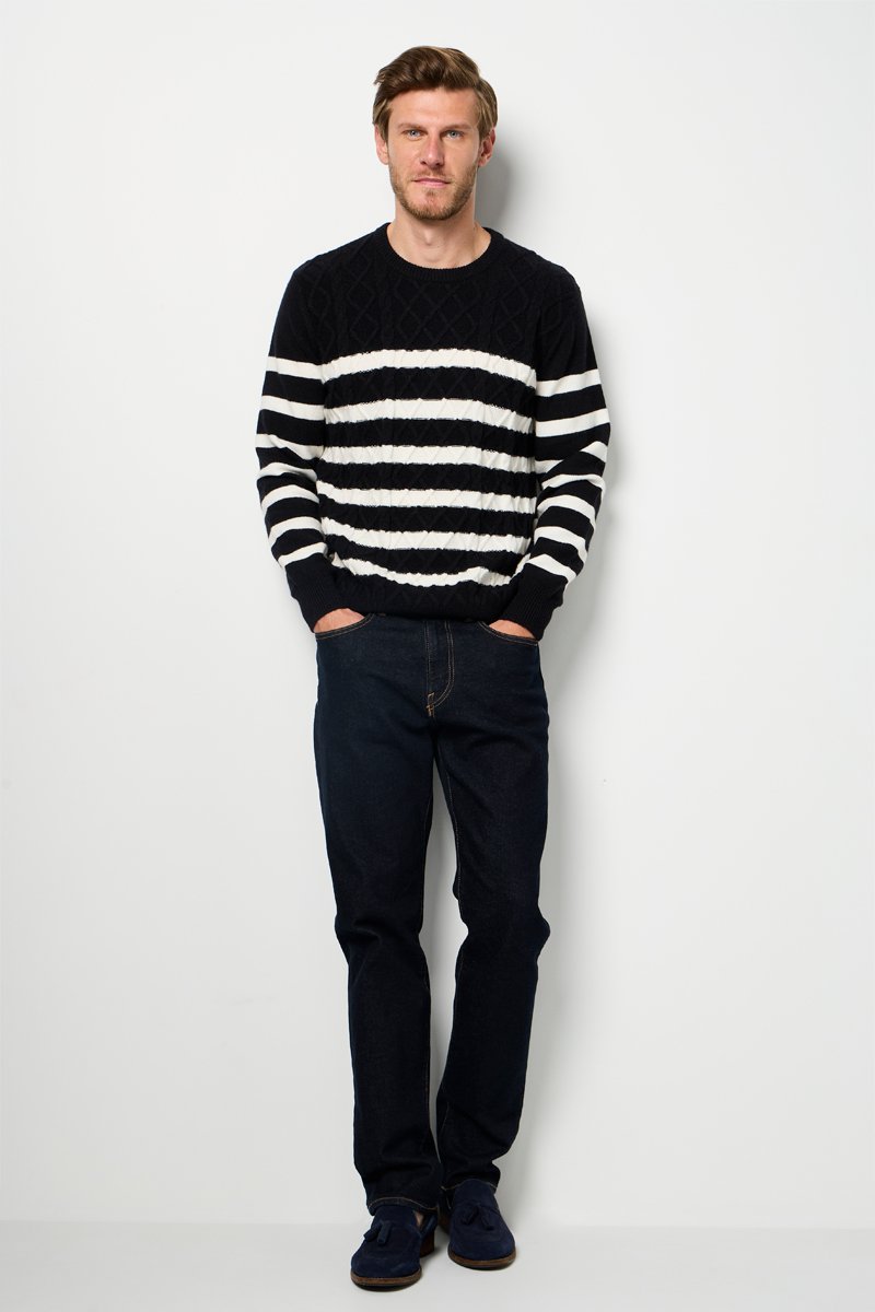 Motivi a righe sulle maniche, sul davanti e sul retro.