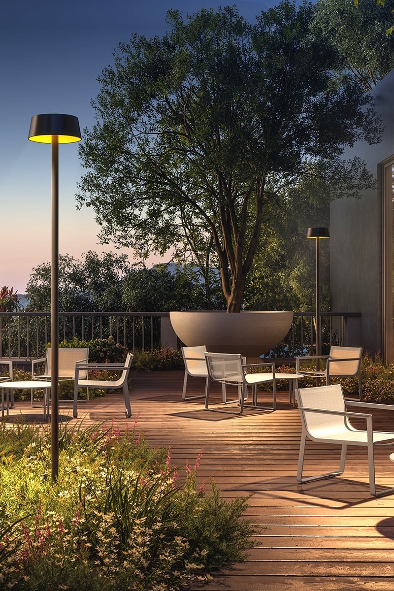 Rilevatore crepuscolare integrato: s’illumina automaticamente quando cala la notte.