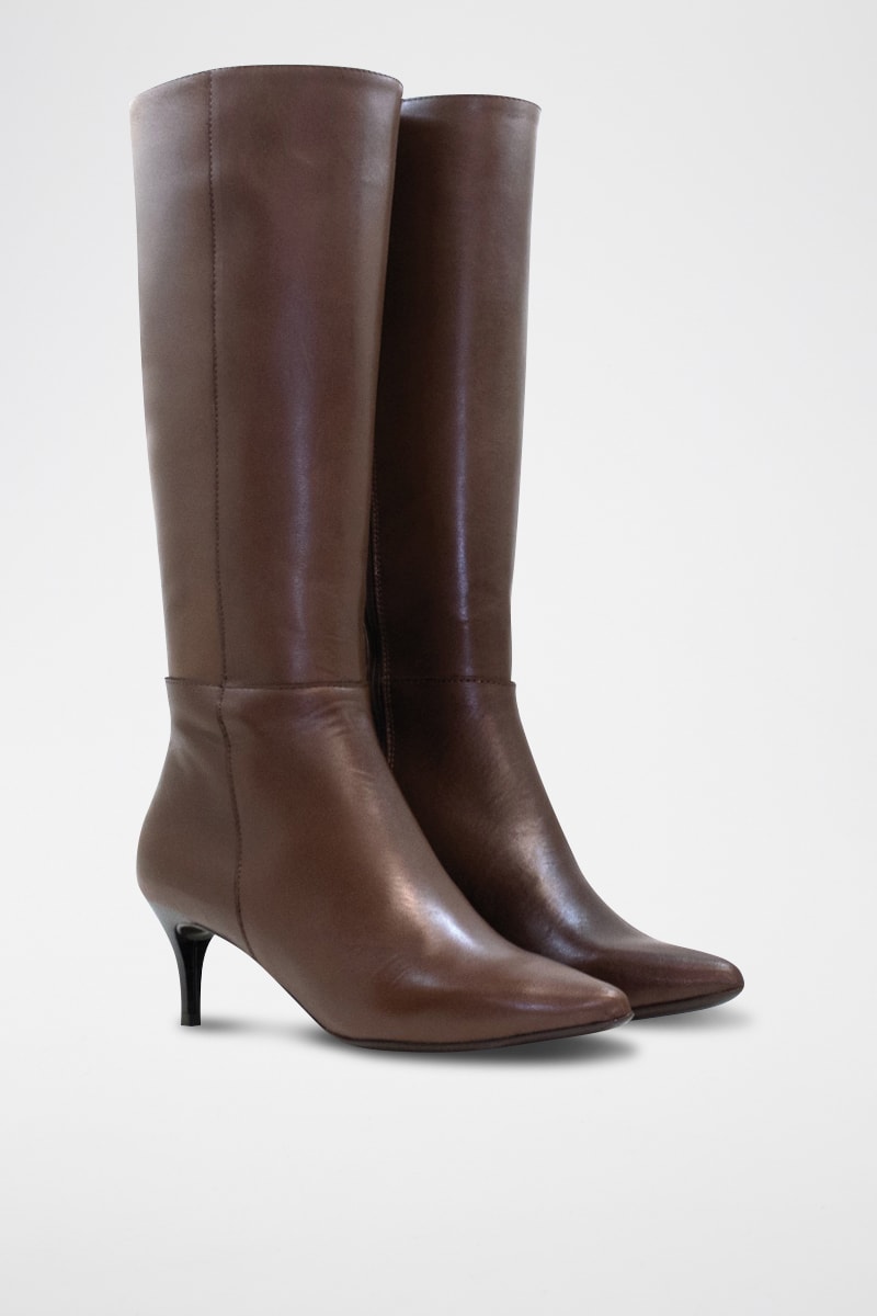 Stivali in crosta di pelle - Marrone