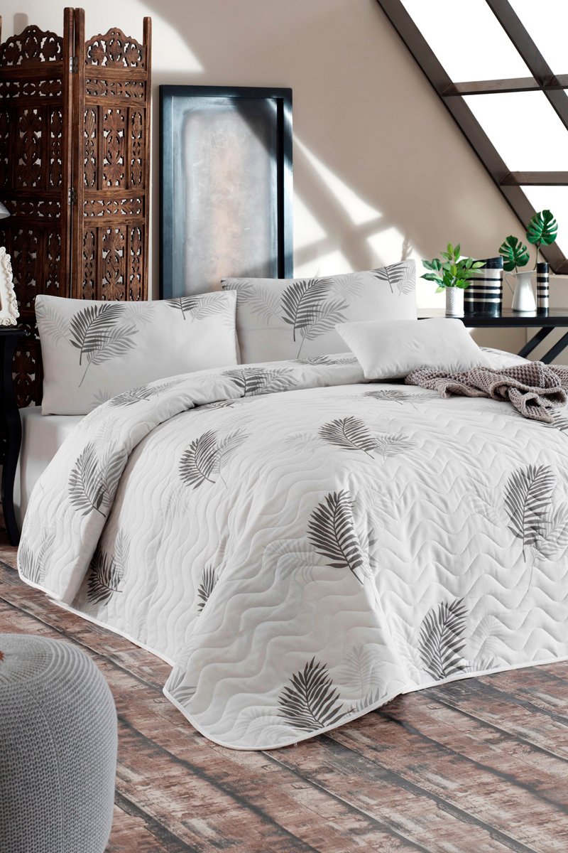 Set copriletto in cotone 48 fili/cm² Palma - Grigio e bianco