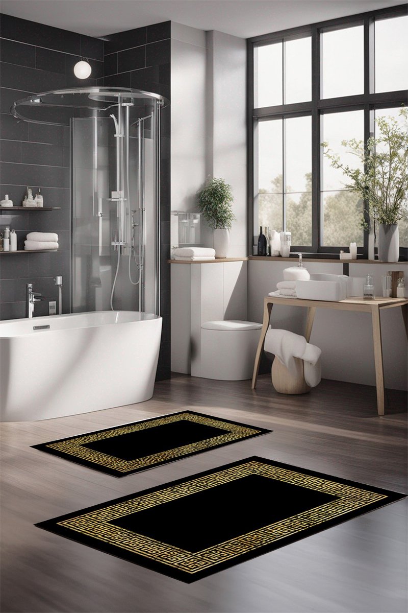 2 tappetini bagno - Nero e dorato - 40 x 60 / 60 x 100 cm