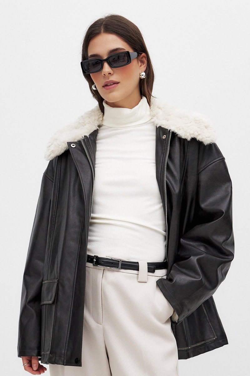 Collo classico in pelliccia sintetica.