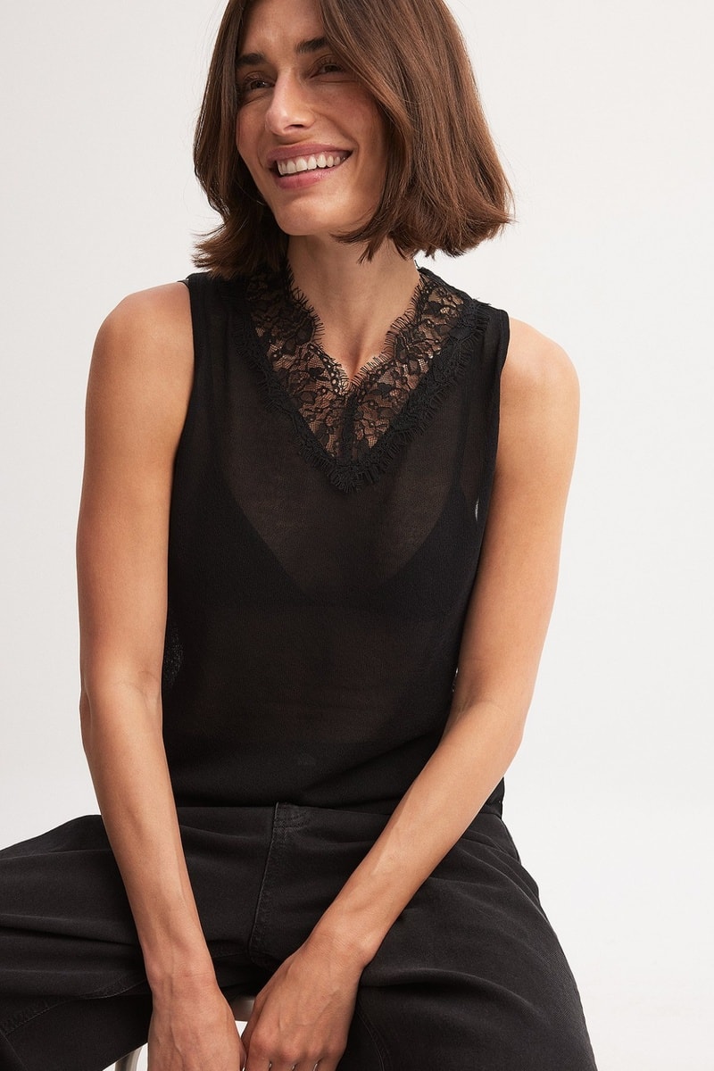 Collo a V con inserto in pizzo.