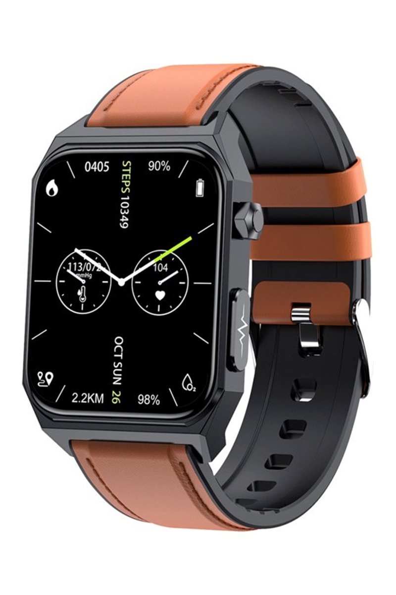 Smartwatch E530 con cinturino in pelle - Nero e marrone