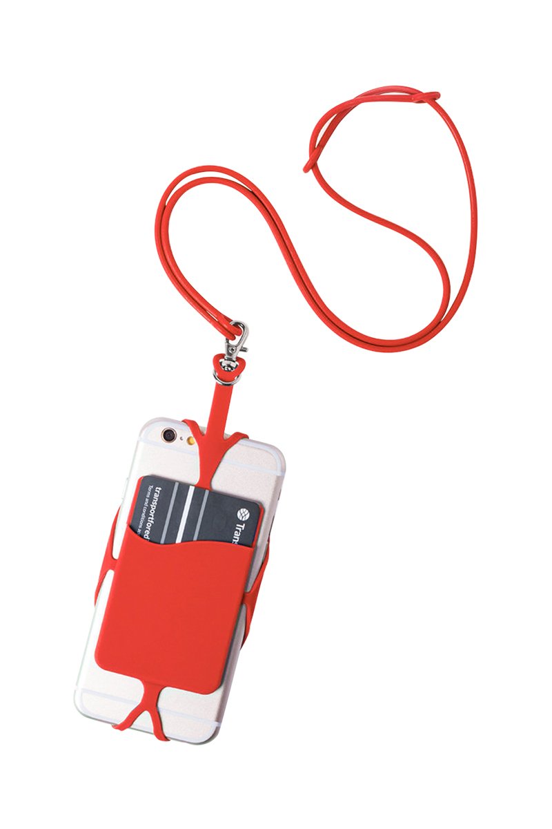 Cordino in silicone per smartphone con portacarte e moschettone - Rosso