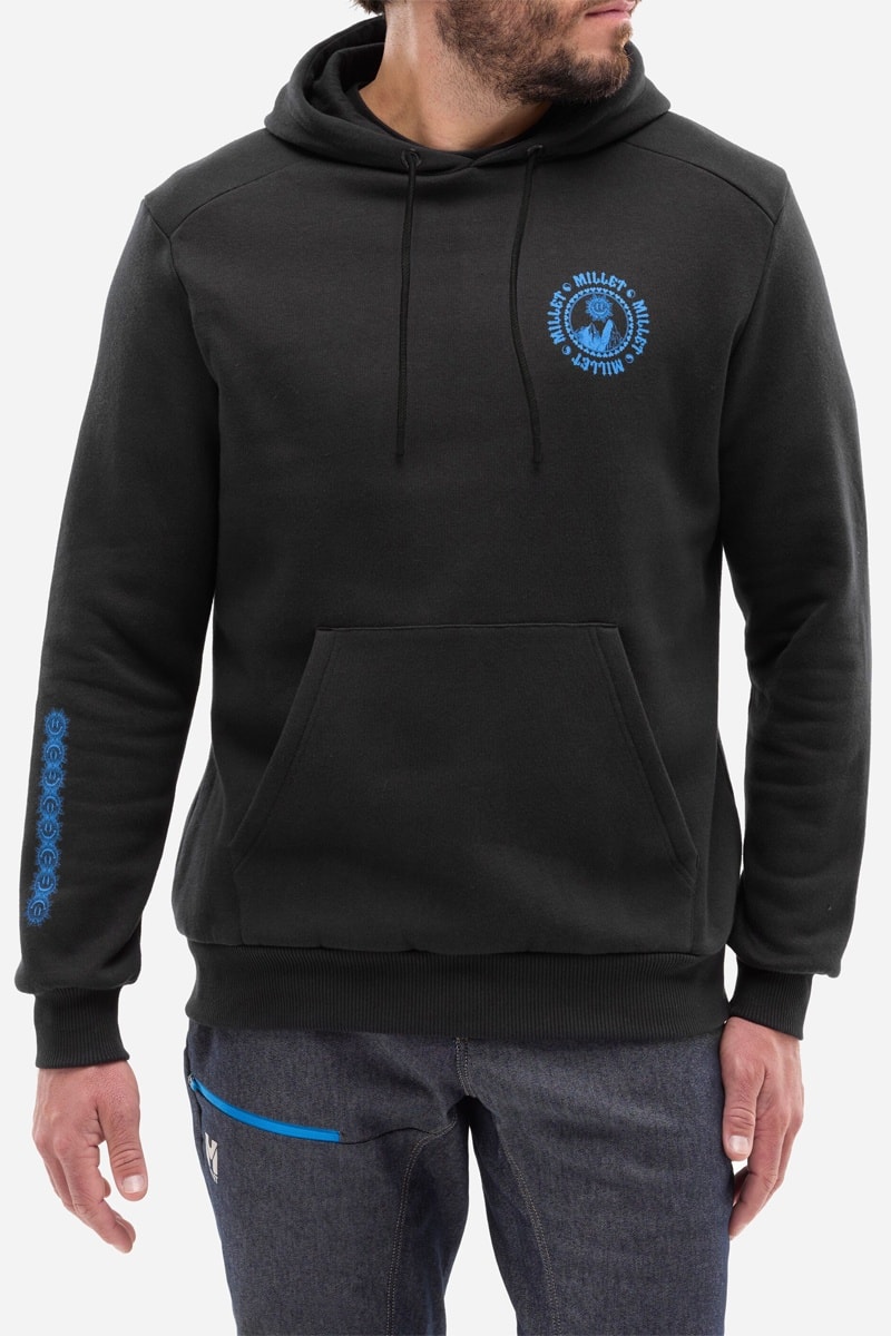 Creazione esclusiva per la marca Millet che si trova in piccolo sulla parte superiore del petto a sinistra, accompagnata da smiley tipo tatuaggio sulla manica destra.