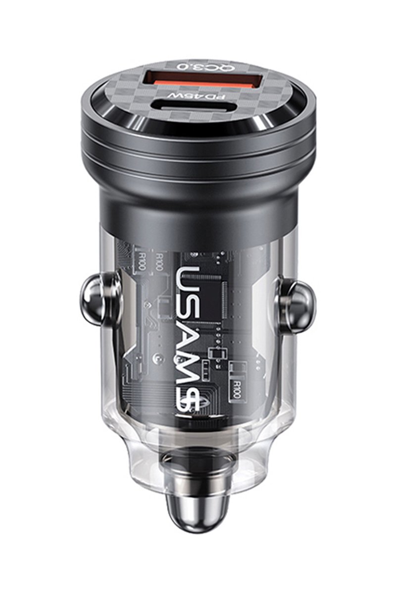 Caricabatteria per auto 45W porta USB-A e USB-C - Nero Trasparente