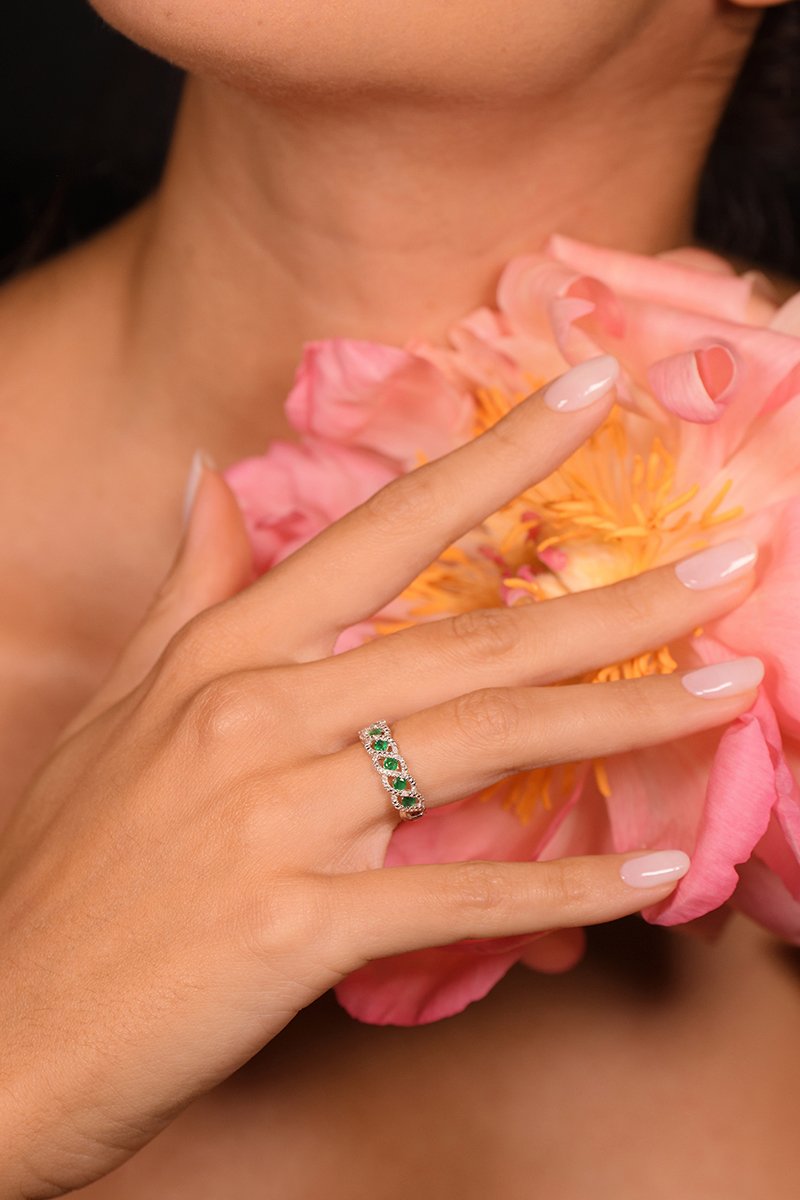 Anello Green Tarlac - Oro bianco, diamanti e smeraldi