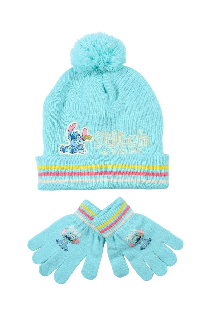 Berretto con pompon e guanti Stitch Lilo & Stitch Disney - Blu