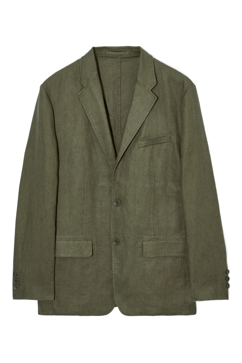 Giacca in lino a maniche lunghe abbottonate.