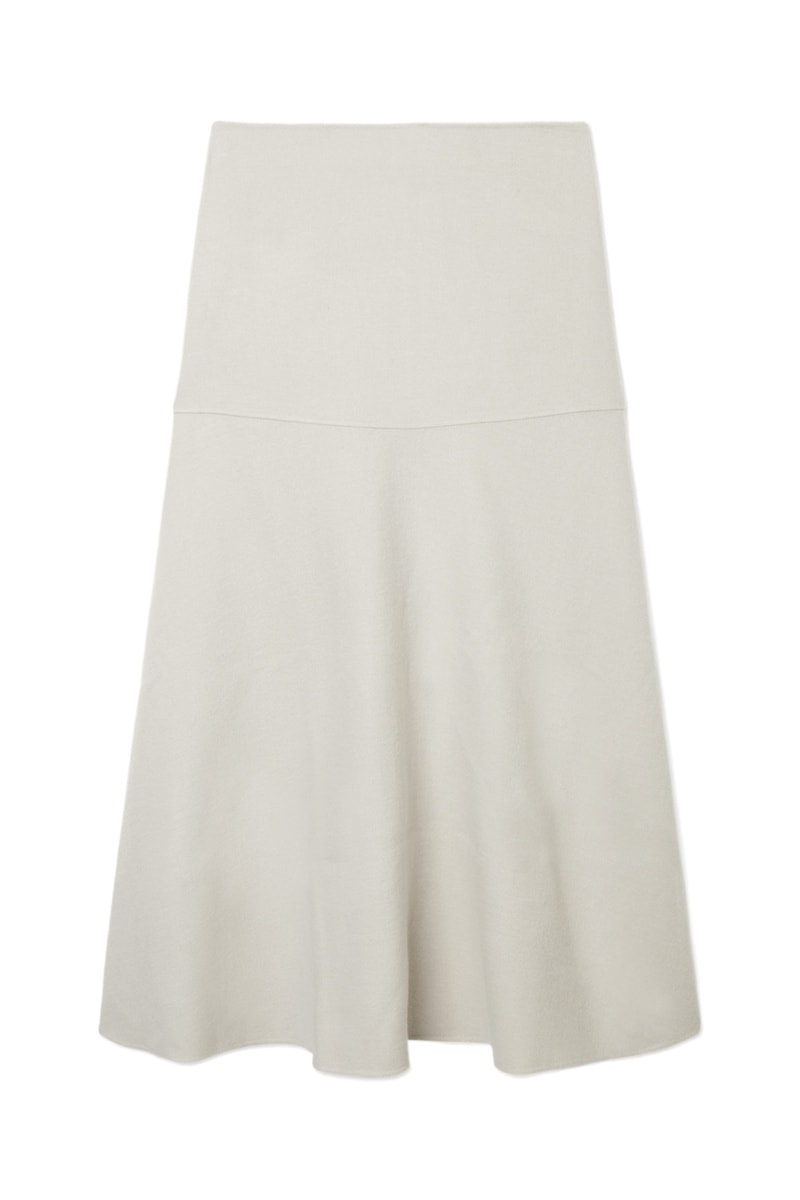 Gonna a campana in lana a vita alta - Beige