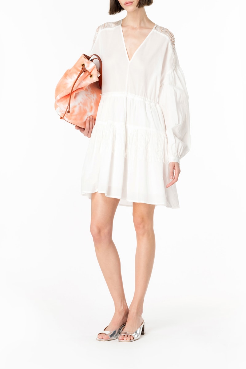 Abito a maniche lunghe a sbuffo con dettagli traforati sulle spalle.