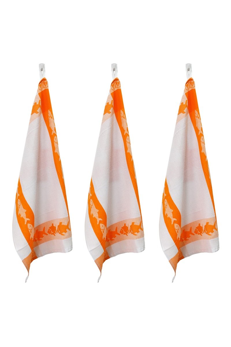 3 strofinacci in cotone Egiziano Collezione Carré - Arancione