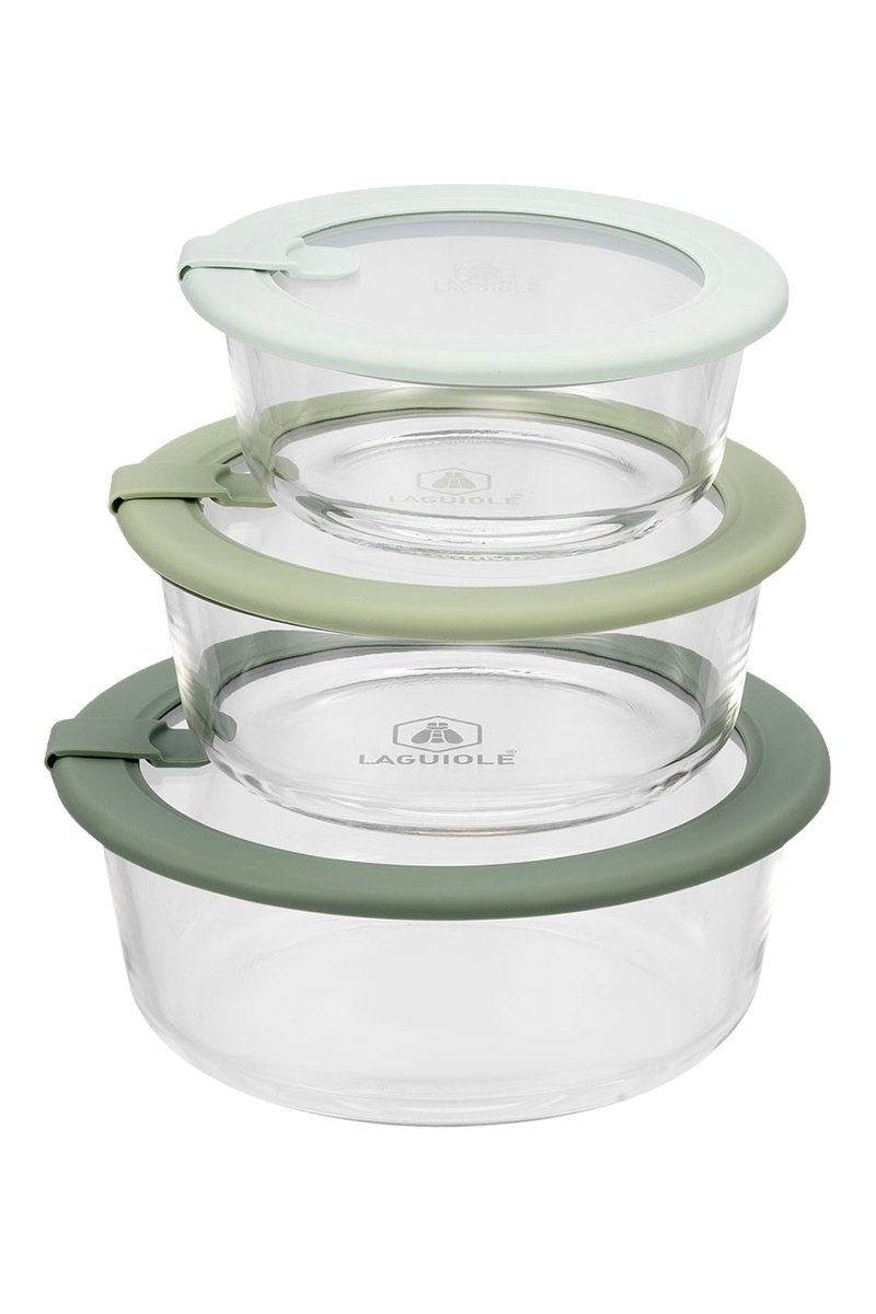 3 contenitori salvafreschezza in vetro borosilicato con coperchio - 400/650/950 ml