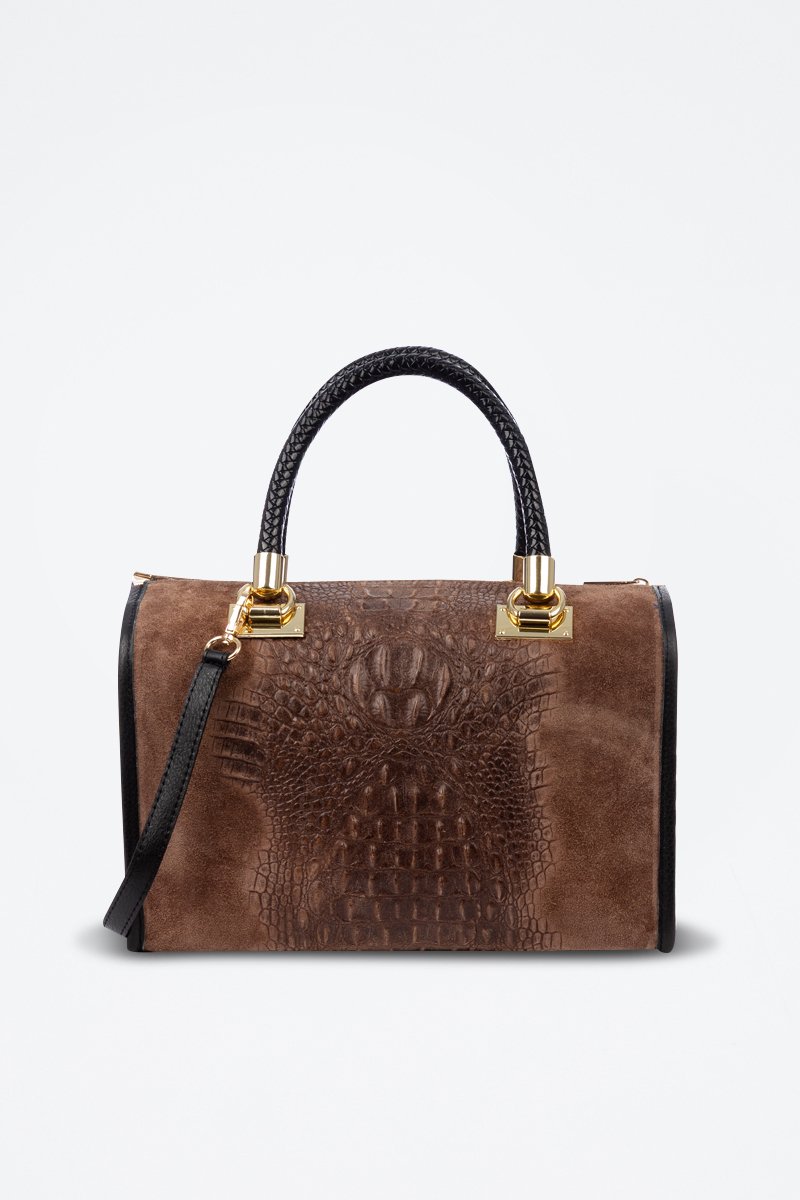 Borsa a bauletto in pelle scamosciata e pelle coccodrillo.