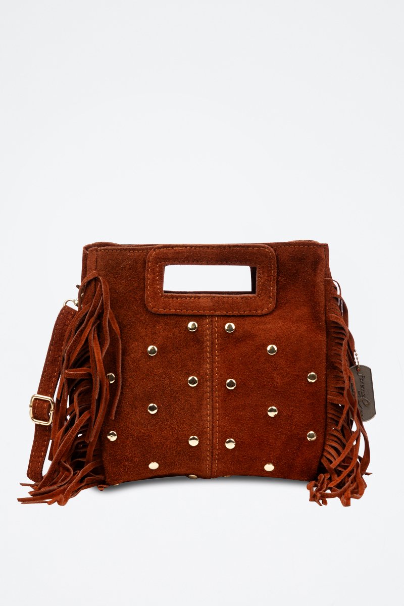 Borsa a mano in pelle scamosciata Barbata - Marrone, dorato e argentato