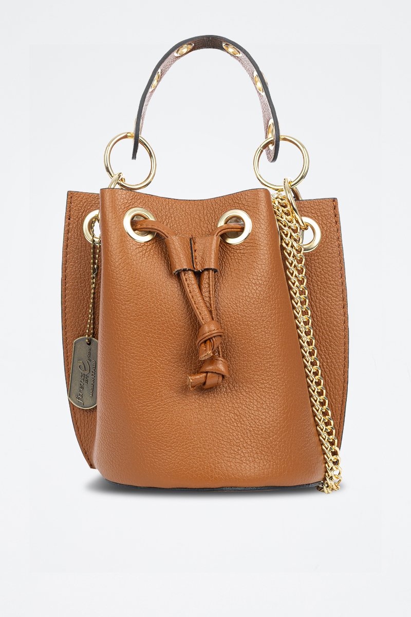 Borsa a secchiello in pelle granulata.