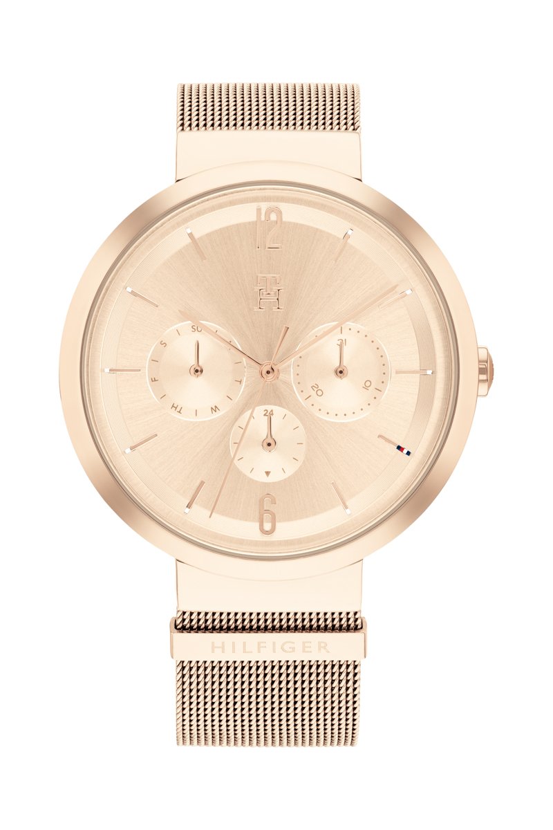 Cassa e cinturino in acciaio inossidabile placcato oro rosa.