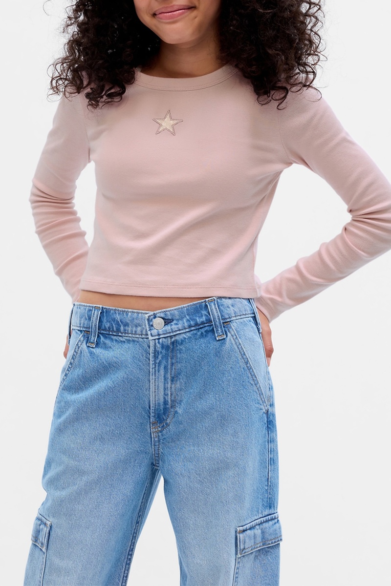 Motivo stella ricamata e glitterato sul davanti.