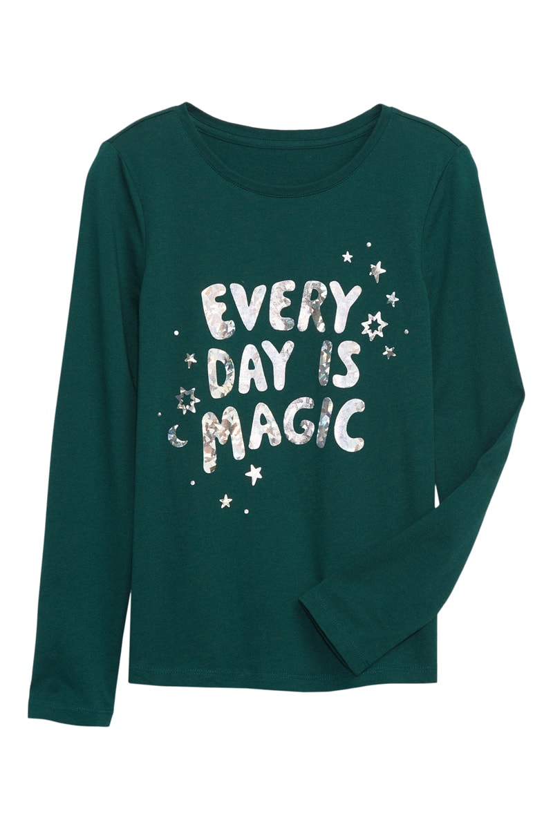 Scritta e motivi stelle glitterati sul davanti.