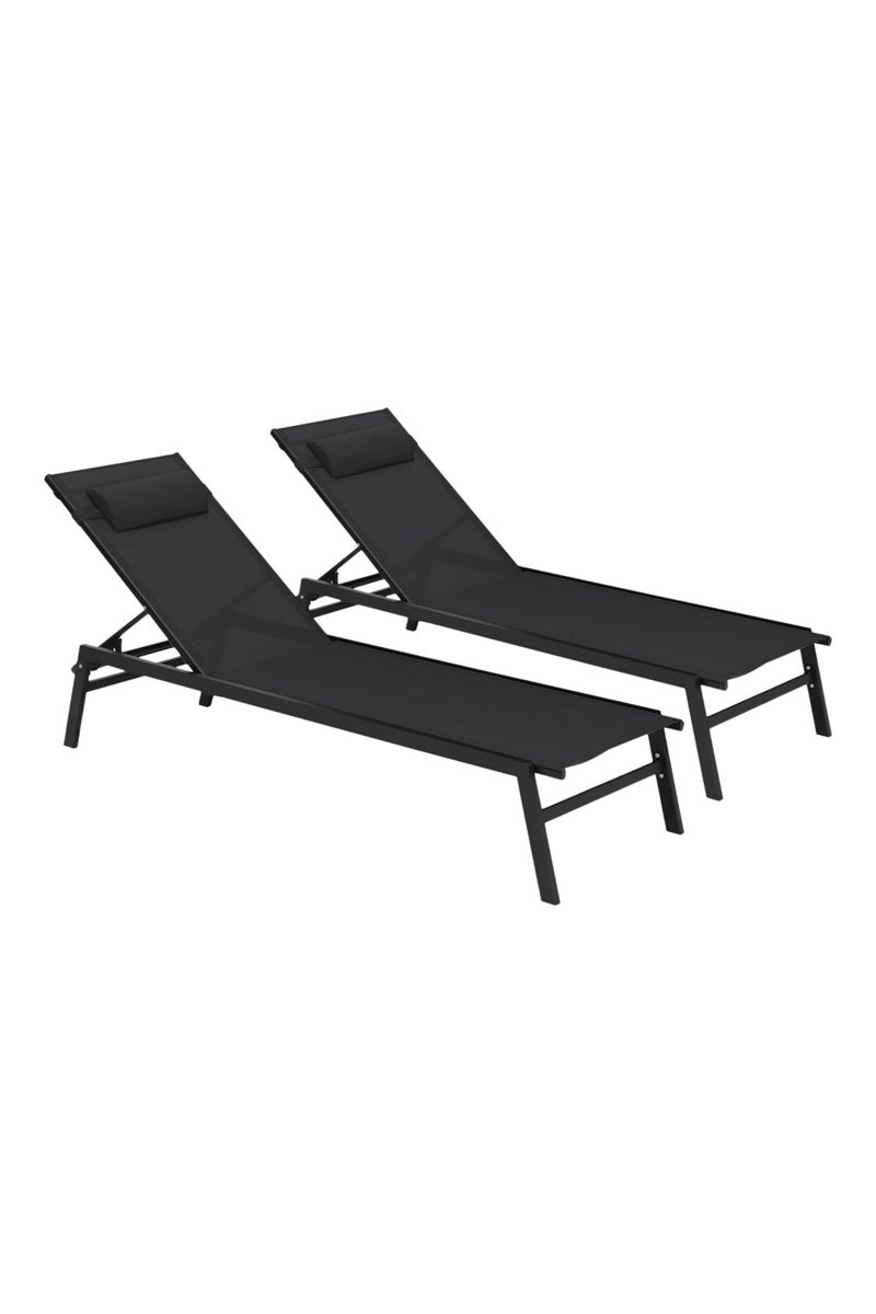 Questo set di 2 chaise longue in alluminio e textilene è ideale per i tuoi momenti di relax al sole.