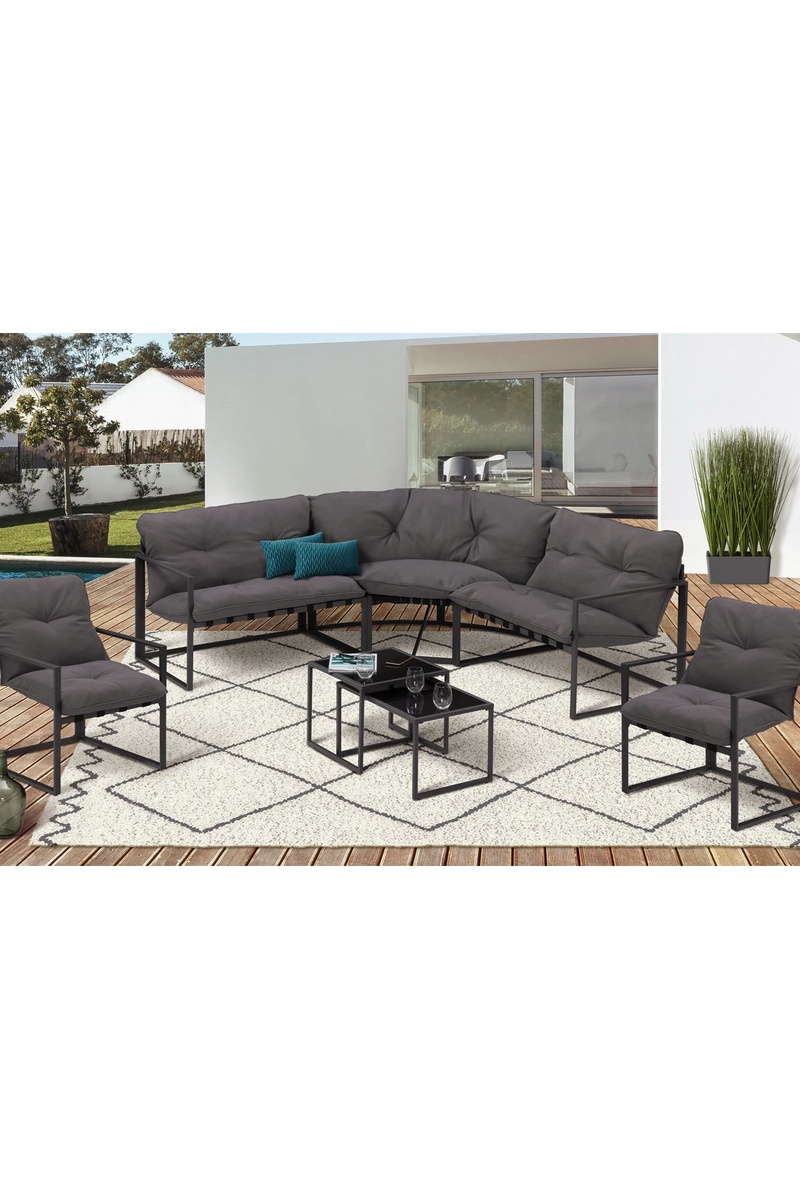 Salotto da giardino Tropéa - Acciaio e vetro temprato