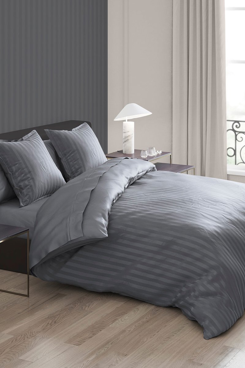 Parure copripiumino in raso di cotone 79 fili/cm² Dobby Stripe - Grigio scuro