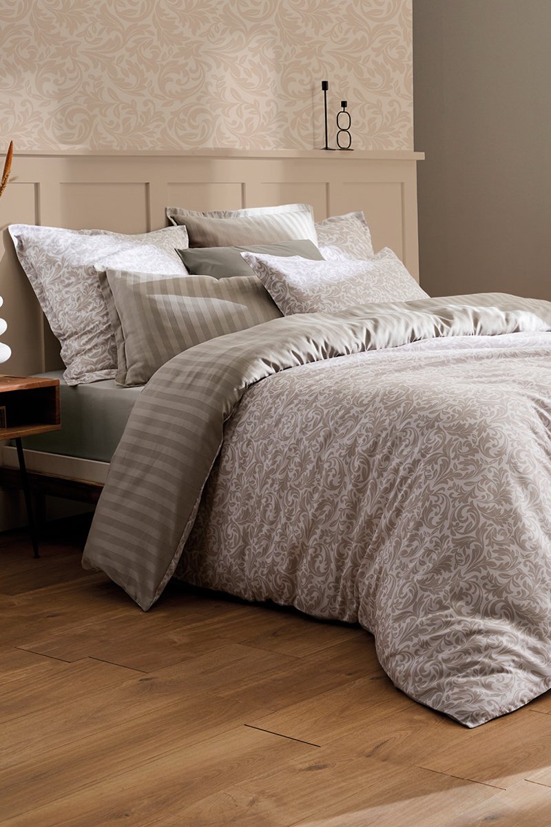 Parure copripiumino in raso di cotone 79 fili/cm² Damask Floralia - Taupe