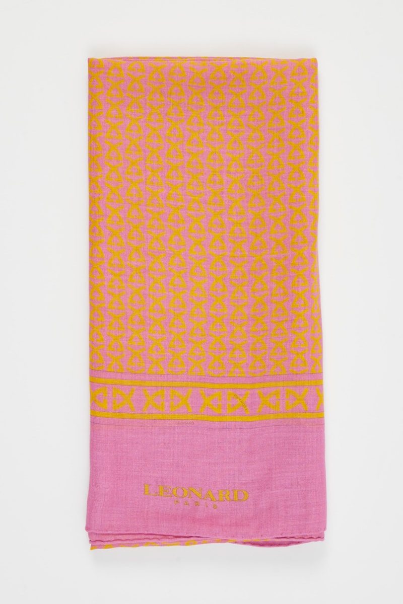 Foulard in cashmere e seta Hobby - Rosa e giallo