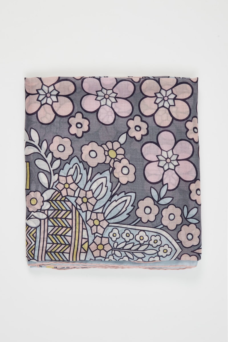 Foulard in lana e seta Disegno ricamo - Grigio chiaro e rosa