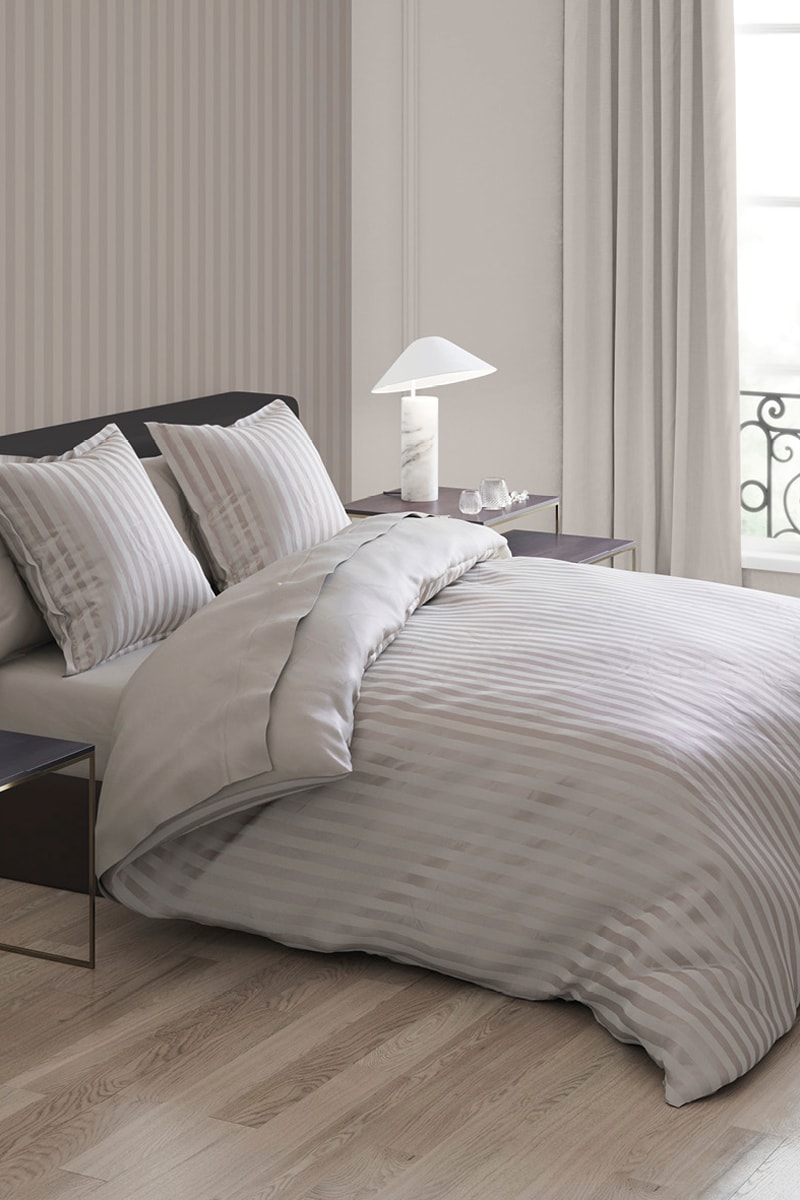 Parure copripiumino in raso di cotone 80 fili/cm² - Taupe ed ecrù