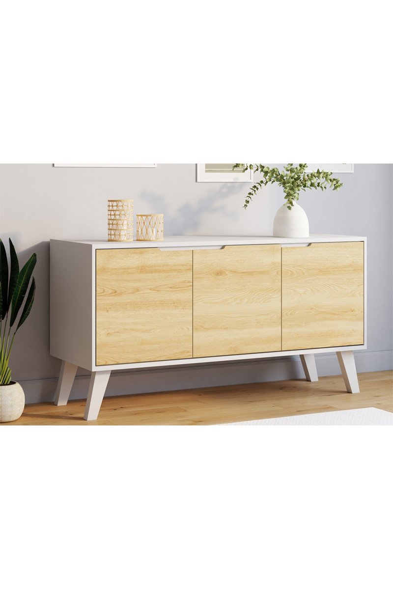 Credenza 3 ante Vigo - Bianco ed effetto legno chiaro