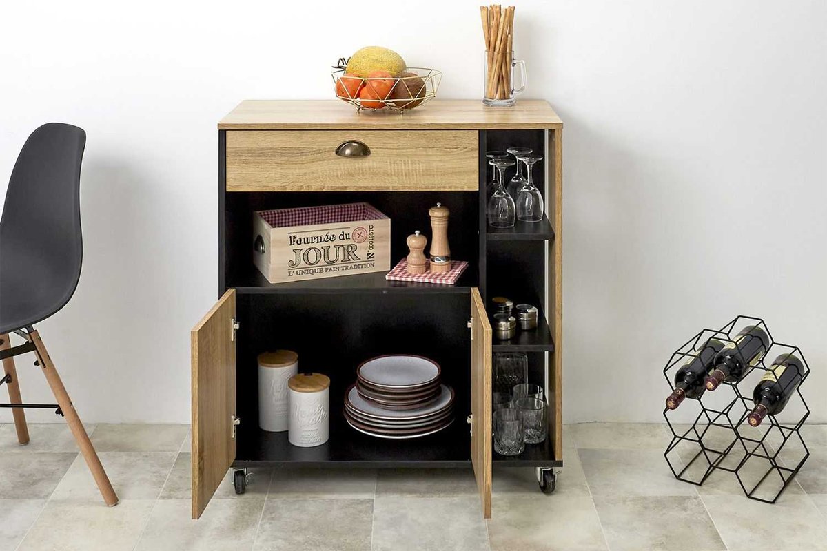 Carrello 2 porte - Effetto legno e nero