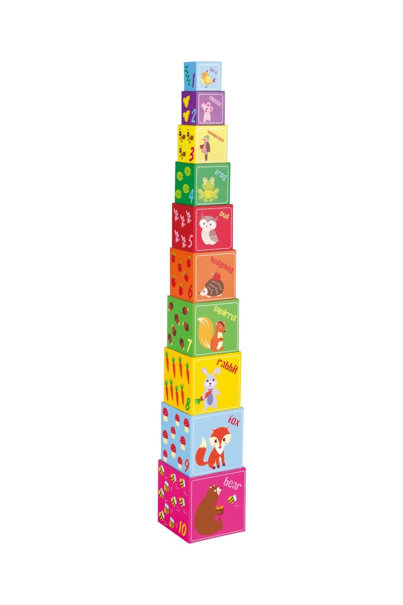 Comprende 10 cubi di cartone fatti a mano, splendidamente illustrati con animali della foresta, numeri ed elementi della natura, favorendo così lo sviluppo attraverso il gioco.