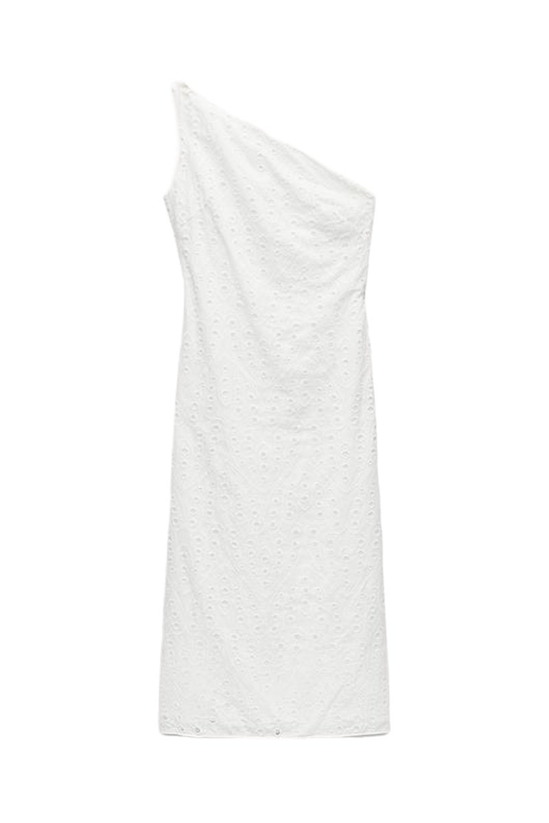 Abito asimmetrico in sangallo.