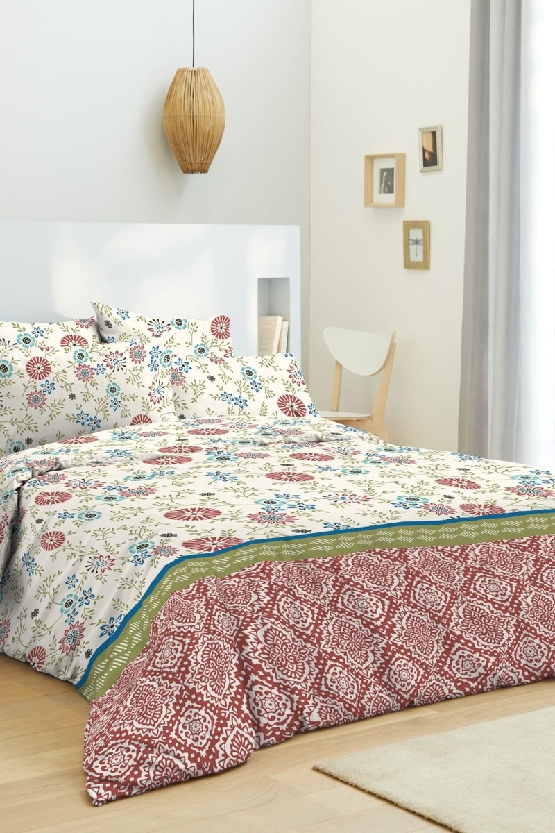 Parure letto double face in cotone Nature Rouge - 57 fili/cm² - Rosso e bianco