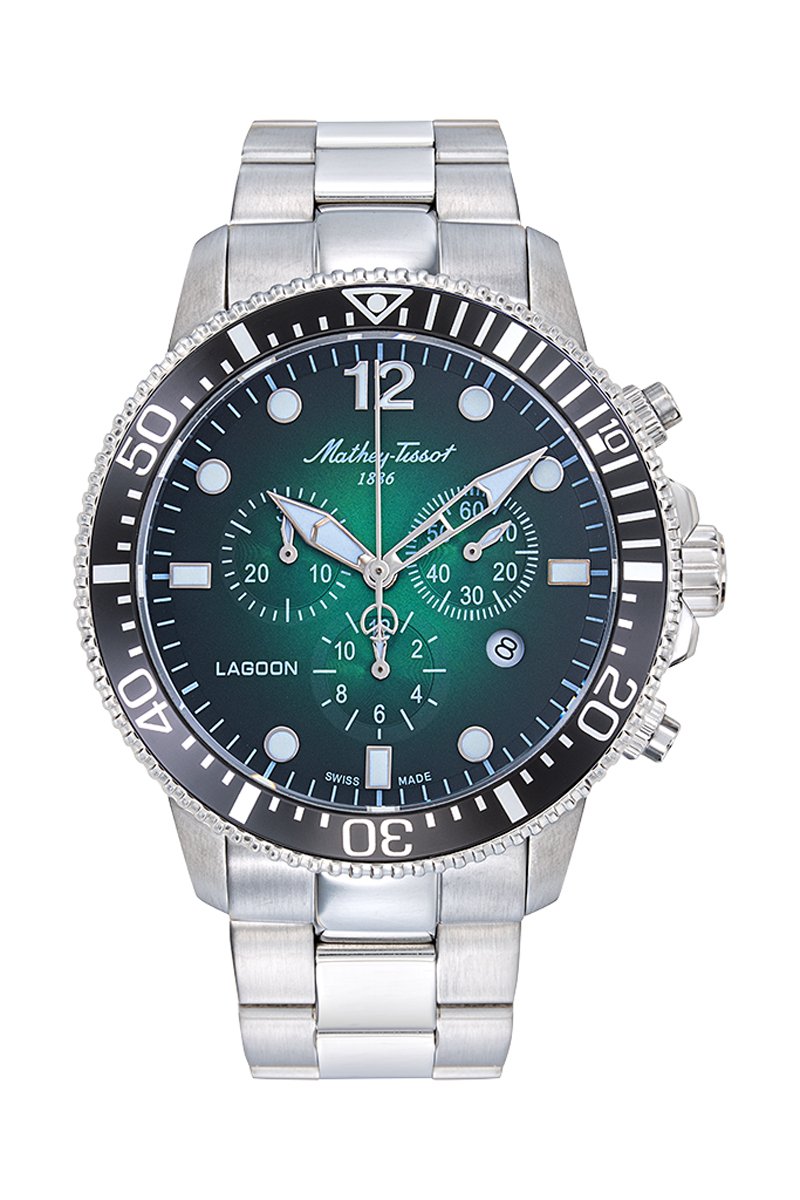 Orologio al quarzo in acciaio Lagoon - Cronografo - Argentato e verde